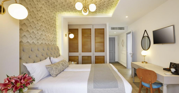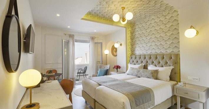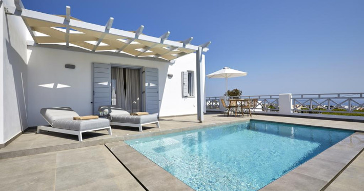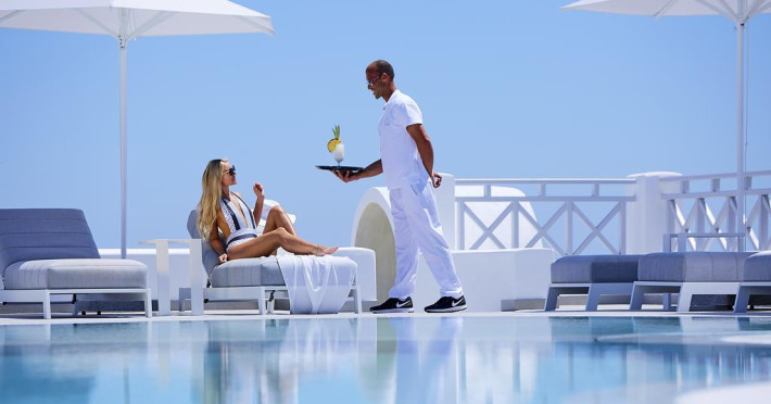 De Sol este o proprietate de 5 stele situată în Fira (Santorini), care oferă piscină în aer liber, terasă cu șezlonguri și umbrele, precum și facilități spa. Proprietatea are servicii de recepție cu program non - stop, concierge și închirieri auto. Se oferă acces gratuit la internet Wi-fi în spațiile publice. Parcarea este posibilă pe stradă, în imediata apropiere a proprietății.