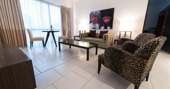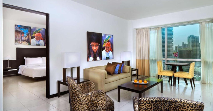 Acest hotel elegant din Panama City oferă o piscină incălzită in aer liber și o sală de sport. Camerele oferă Wi-Fi gratuit și vedere la oraș sau la mare.