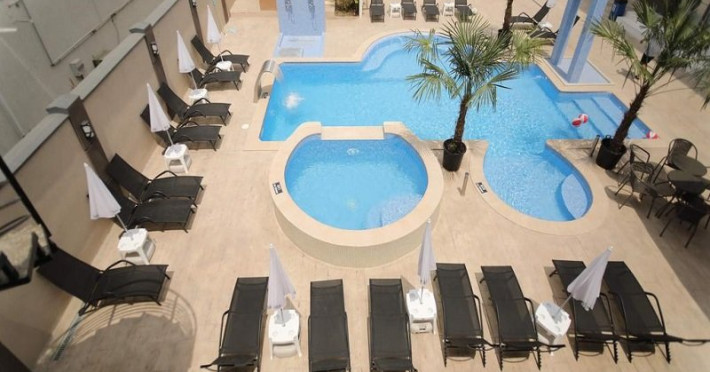 Piscina pentru adulti; Umbrele si sezlonguri la piscina in limita locurilor disponibile (alocarea sezlongurilor se face in ordinea sosirii);