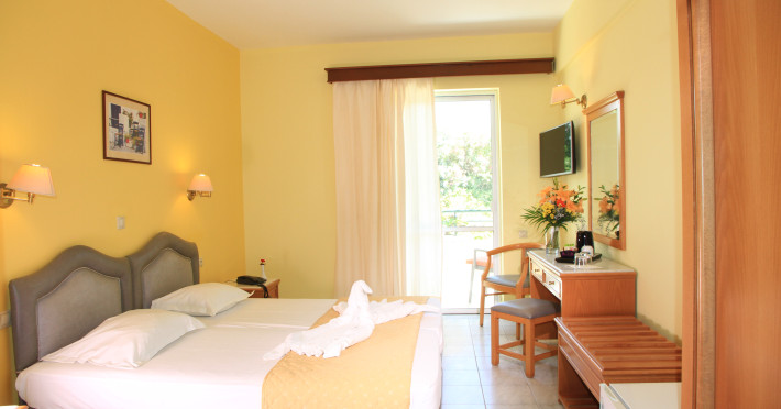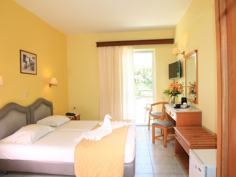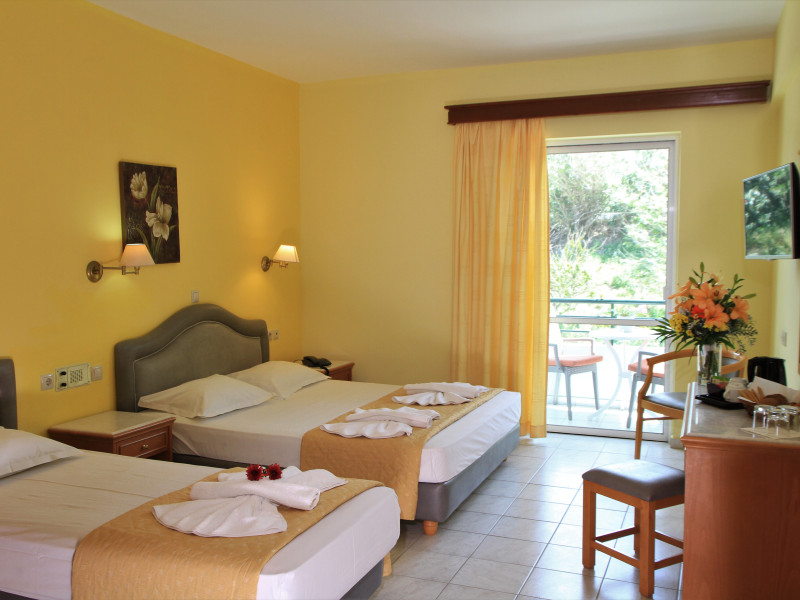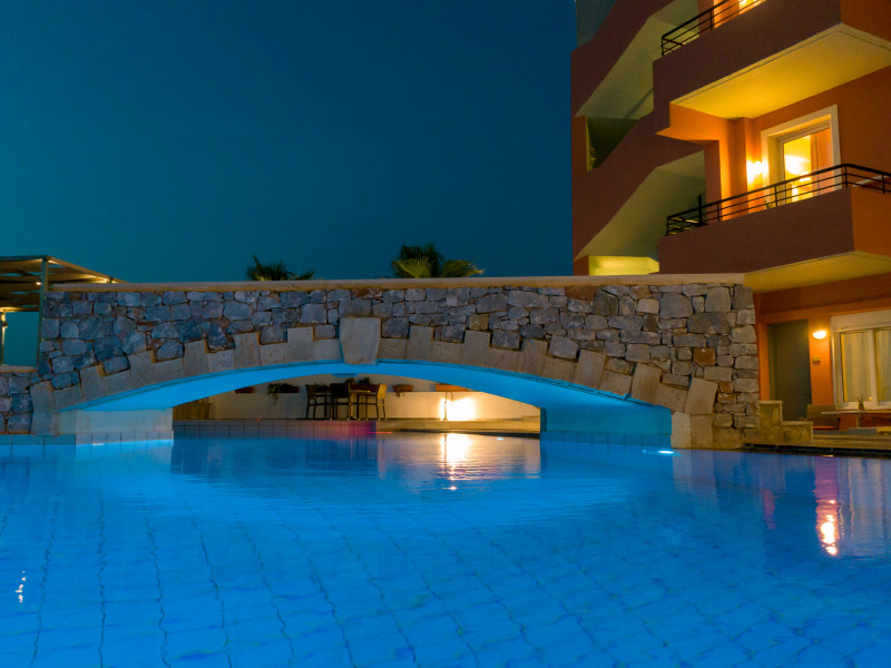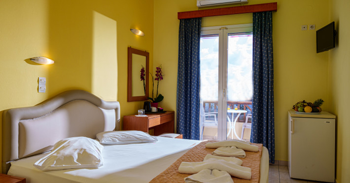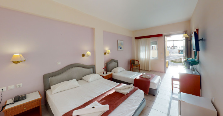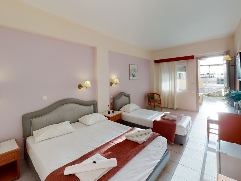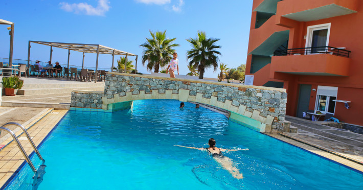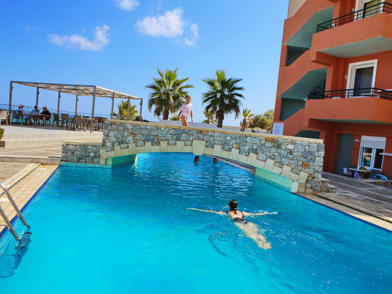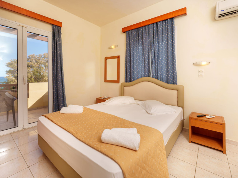 Dedalos Beach Hotel in Sfakaki has 82 rooms, distributed across 3 buildings and spread over 3 floors. The hotel is located directly at the gravel and sandy beach. To make guests stay more comfortable air conditioning, an elevator and a lobby are available. Multilingual personnel. A fresh water swimming pool with a separate children's pool is available. Sunshades and sunbeds are available for an additional fee at the beach. Sunshades are available free of charge at the pool. Distance from the hotel to disco (3 km) and shops (3 km). The hotel is within easy reach of supermarkets and bus stops. The hotel ensures that disabled guests are catered for with the following amenities: a ramp or level access and wheelchair suitable lift. For convenience the hotel offers maid service and wake-up service. Internet access is provided at Wi-Fi Hot Spots. This family friendly hotel offers a children's pool to ensure a comfortable stay for parents as well as young guests. The hotel has 2 restaurants. A snack bar is also available throughout the day. Activities such as a game room, billiards, darts and table tennis are offered at the hotel.