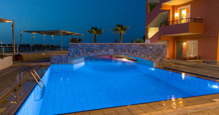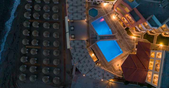 The hotel is ideally located in front of the beach of the picturesque village Sfakaki - it is only 10 minutes drive away from the city of Rethymno (9 km) and 45 minutes from the International Airport of Heraklion.