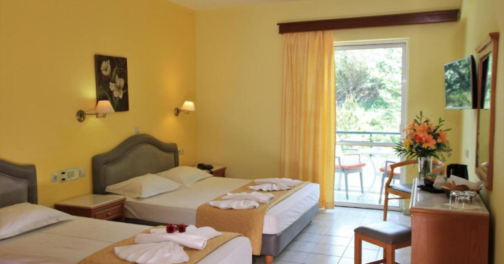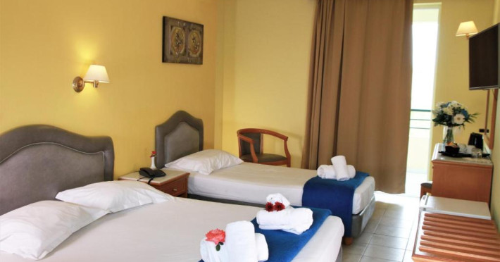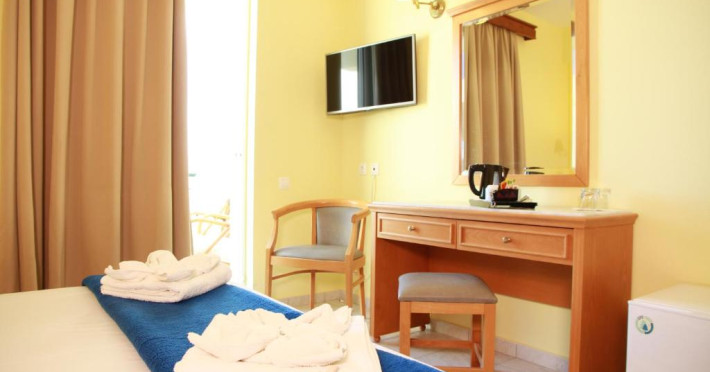 Dedalos Beach Hotel este situat chiar pe plaja Sfakaki, cu un bar pe plajă și o tavernă. Inconjurat de o grădină bine ingrijită, cu bougainvillea, acesta oferă piscină in aer liber cu o secțiune separată pentru copii, un restaurant și bar la piscină. Avand deschidere spre un balcon sau patio, toate camerele cu aer condiționat oferă vedere directă sau laterală la Marea Cretei sau la grădină. Luminoase și spațioase, fiecare include TV cu canale prin satelit și frigider. Baia privatăe este dotată cu uscător de păr. Oferind vedere la piscină, restaurantul principal de la Dedalos servește micul dejun și cina in stil bufet. Oaspeții pot comanda băuturi răcoritoare și cocktailuri langă piscină sau pe plajă. Taverna de la malul mării pregătește mancăruri grecești și specialități locale pentru pranz. Opțiunile de divertisment includ o sală de jocuri cu mese de biliard, precum și masă de ping pong. Accesul la internet Wi-Fi este gratuit in zonele publice. Un supermarket și o stație de autobuz pot fi găsite la 200 de metri de Dedalos Beach Hotel. Orașul Rethymno este la 11 km și aeroportul internațional Chania se află la 73 km. In apropiere este o parcare gratuită.