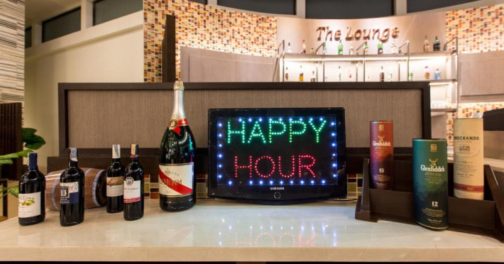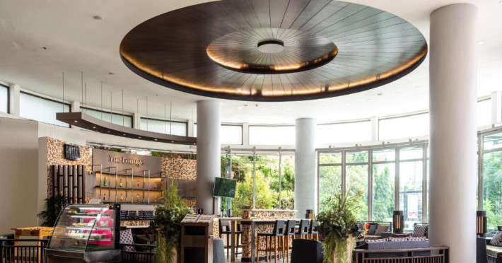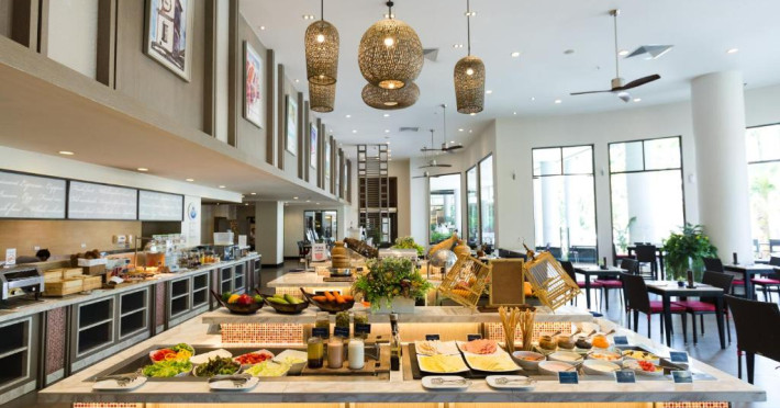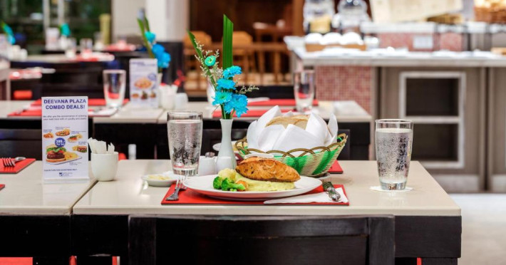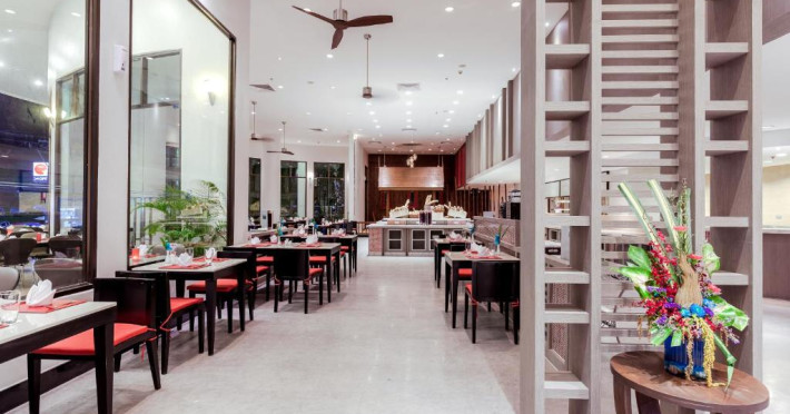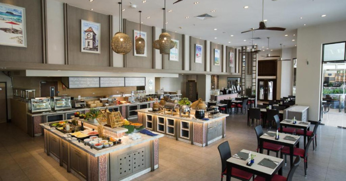 Restaurantul serveste preparate internationale, cu optiuni de luat masa in interior si in aer liber. Puteti savura băuturi la barul din hol si la barul de langă piscină.