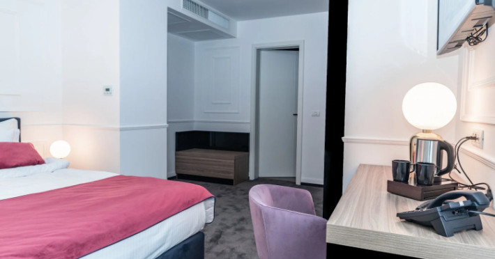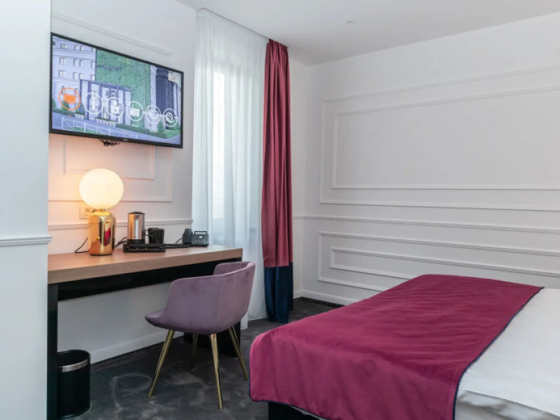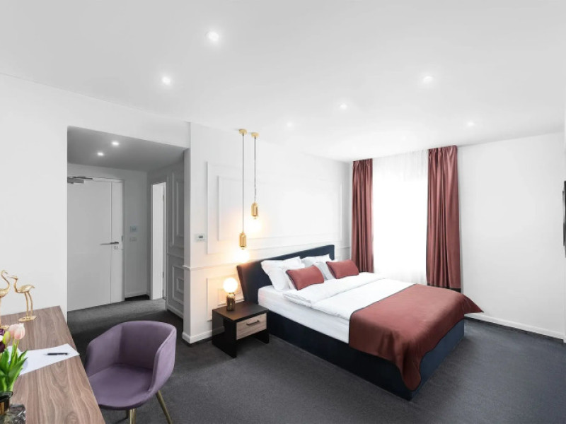 Good choice if youre looking forward to taking some rest at the hotel as much as to walking around the city. Hotel Del Corso Hotel is located in Timisoara. This hotel is located minutes away from the city center.Good choice if youre looking forward to taking some rest at the hotel as much as to walking around the city. Hotel Del Corso Hotel is located in Timisoara. This hotel is located minutes away from the city center.Spend an evening in a nice atmosphere of the bar. Taste the local cuisine and have a rest in the restaurant. Free Wi-Fi is available on the territory. Ask for more information when checking in. Specially for tourists who travel by car, theres a free parking zone.Also, the following services are available for guests at the hotel: a sauna and a spa center. Guests who love doing sports will be able to enjoy a fitness center and a gym. For business meetings, there is a conference hall and meeting and presentation facilities. If you want to make your journey even more comfortable, you can order a transfer.Accessible for guests with disabilities: the elevator helps them to go to the highest floors. There are other services available for the guests of the hotel. For example, a laundry, dry cleaning, ironing, press, a safe-deposit box and a concierge.Spend an evening in a nice atmosphere of the bar. Taste the local cuisine and have a rest in the restaurant. Free Wi-Fi is available on the territory. Ask for more information when checking in. Specially for tourists who travel by car, theres a free parking zone.Also, the following services are available for guests at the hotel: a sauna and a spa center. Guests who love doing sports will be able to enjoy a fitness center and a gym. For business meetings, there is a conference hall and meeting and presentation facilities. If you want to make your journey even more comfortable, you can order a transfer.Accessible for guests with disabilities: the elevator helps them to go to the highest floors. There are other services available for the guests of the hotel. For example, a laundry, dry cleaning, ironing, press, a safe-deposit box and a concierge.In the room, there is a TV, a mini-bar, a bathrobe and slippers. Please note that the listed services may not be available in all the rooms.In the room, there is a TV, a mini-bar, a bathrobe and slippers. Please note that the listed services may not be available in all the rooms..7 0 available 0.RON airport not included 275 one wayDatorita dinamicitatii domeniului disponibilitatea ofertelor se modifica de la un moment la altul. De aceea ofertele sunt valabile in limita locurilor disponibile. Agentia nu este responsabila pentru eventualele neconcordante care pot aparea intre informatiile privind tarifele si alte detalii din site si informatiile primite in agentie. In aceste cazuri vor avea prioritate, intotdeauna, informatiile primite in agentie.