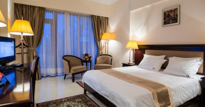 Senior suite - are o suprafata de 55 mp, formate dintr-un dormitor cu pat matrimonial king size un living luminos si elegant (datorita peretilor de tip cortina) mobilat cu canapea exensibil si fotolii, terasa spatioasa (dotata cu masa si scaune), dispune de masa si scaune, aer conditionat, minibar, seif, baie cu bideu si dus, uscator de par, doua telefoane, in camera si baie, doua televizoare, birou, internet TV, DVD player, fierbator, fier cu masa de calcat, cosmetice hotel. Capacitatea maxima este de 3 adulti + 1 copil pana in 12 ani sau 2 adulti si 2 copii si nu poate acomoda pat suplimentar.