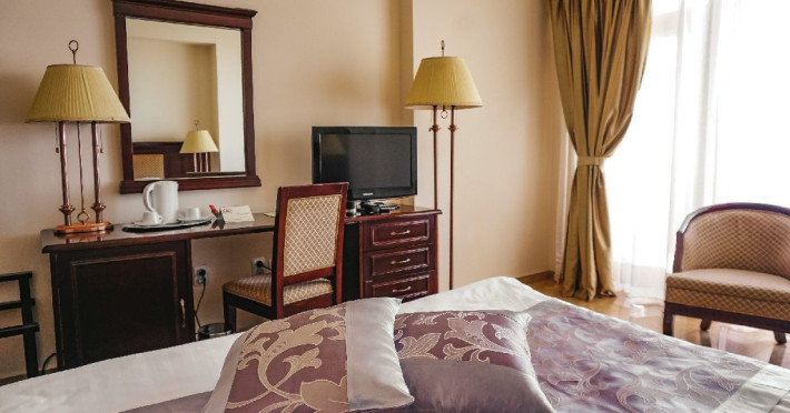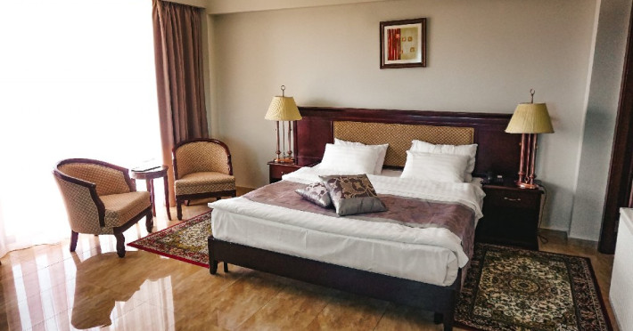 - Camerele ,,Executive Suite au in structura un living modern cu canapea, doua fotolii, balcoane spatioase (dispunand de masa si scaune), aer conditionat, minibar, seif, baie cu bideu si dus, uscator de par, doua telefoane in camera si baie, doua televizoare LCD, birou, internet wireless gratuit si cablu TV, DVD player, expresor de cafea si fier de calcat, masa de calcat, cantar, pachet VIP si obiecte de igiena. Suprafata totala este de 55 mp. Pentru apartamentele Executive, VIP si Senior Suite, capacitatea maxima este de 4 adulti si 2 copii.