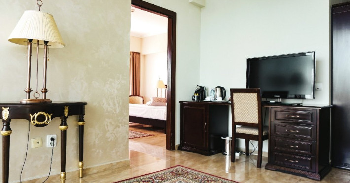 - Camerele Senior Suite au in structura un living modern cu canapea, doua fotolii, balcoane spatioase (dispunand de masa si scaune), aer conditionat, minibar, seif, baie cu bideu si dus, uscator de par, doua telefoane in camera si baie, doua televizoare LCD, birou, internet wireless gratuit si cablu TV si obiecte de igiena. Suprafata totala este de 55 mp. Pentru apartamentele Executive, VIP si Senior Suite, capacitatea maxima este de 4 adulti si 2 copii.