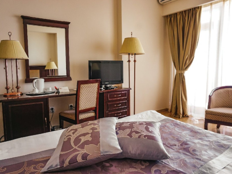 Camere: Hotelul dispune de 70 camere duble standard, 6 Duble Executive cu vedere la mare, 5 Junior Suite, 6 Senior Suite, 2 VIP Suite, 2 Executive Suite