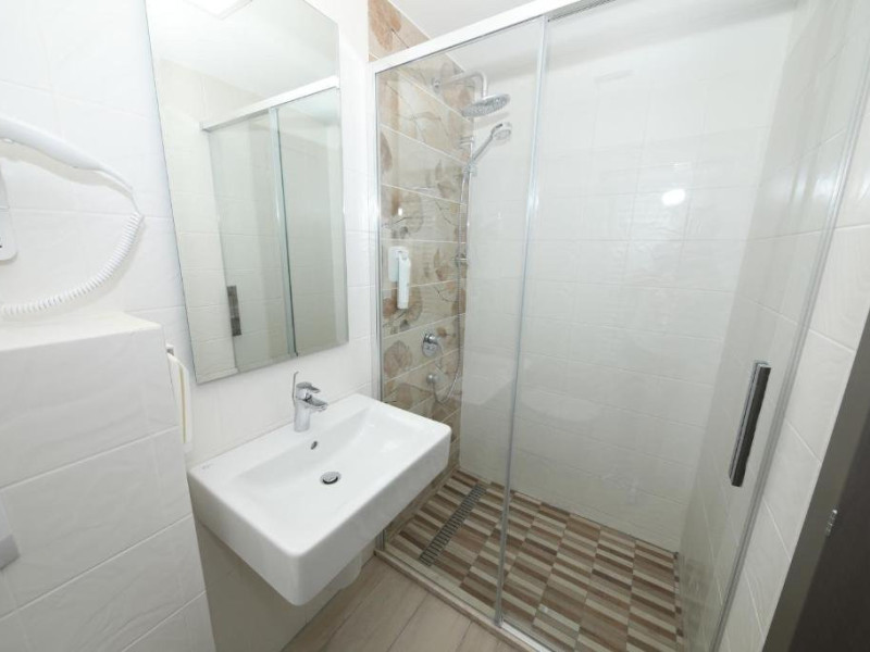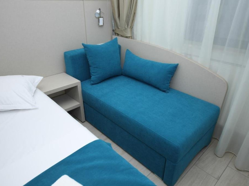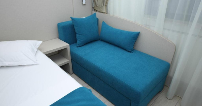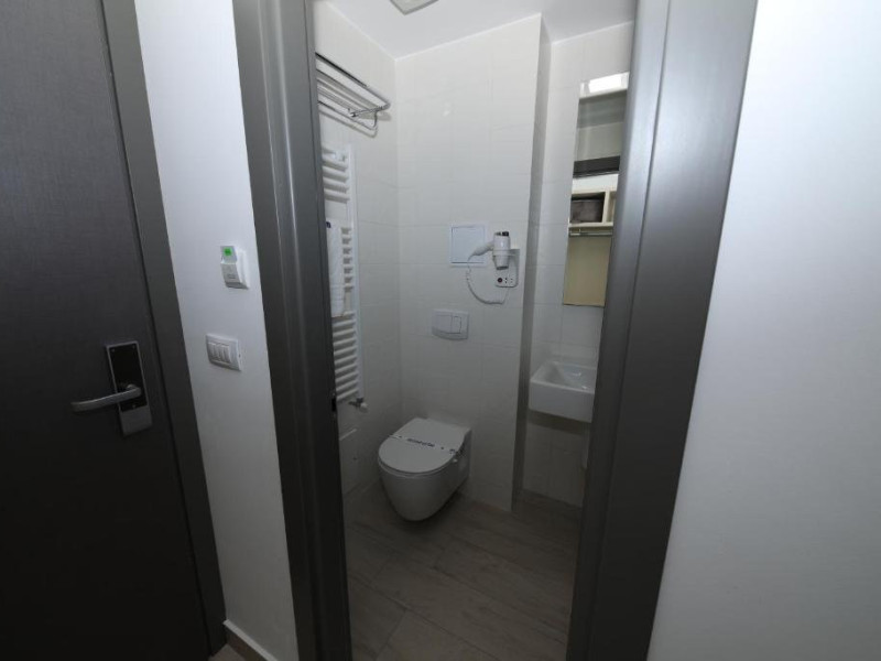 Camera este spatioasa, cu o suprafata de 18mp si impresioneaza prin imbinarea comfortului cu funtionalitatea. Este dotata cu toate facilitatie corespunzatoare pentru o sedere cat mai placuta: aer conditionat, minibar, mobilier de camera compus din pat dublu de 1.60 / 2.00m si o sofa extensibila de 0.7/2.00m, birou si garderoba sau dulap. Televizorul cu ecran plat, internetul wireless si baia privata dotata cu dus, uscator de par si prosoape, in care articolele de toaleta sunt gratuite, aduc un plus de comfort, toate acestea pentru a va oferi o experienta de cazare cat mai placuta. Luminoasa si comfortabila, camera este dotata cu tamplarie si geam termopan, balcon, pardoseala din gresie iar accesul este se face baza de cartela.