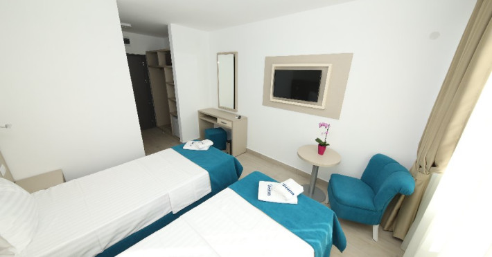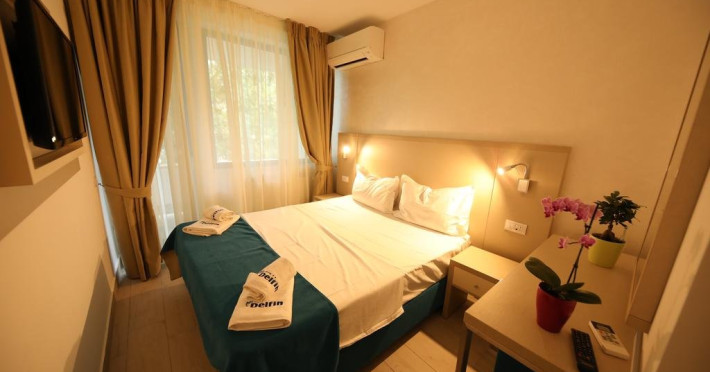 Toate camerele hotelului Delfin au aer conditionat, TV, internet, minibar, baie cu dus, uscator de par, produse de igiena. O parte dintre camere au balcon.