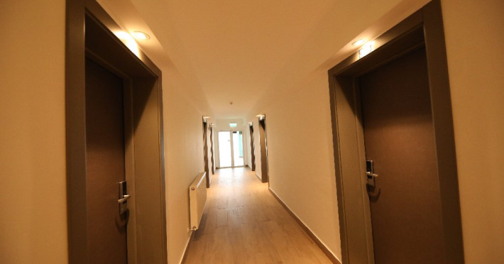 Camera dubla cu vedere la gradina are 15 mp si este dotata cu pat dublu de 160/190 cm, nu au balcon.
