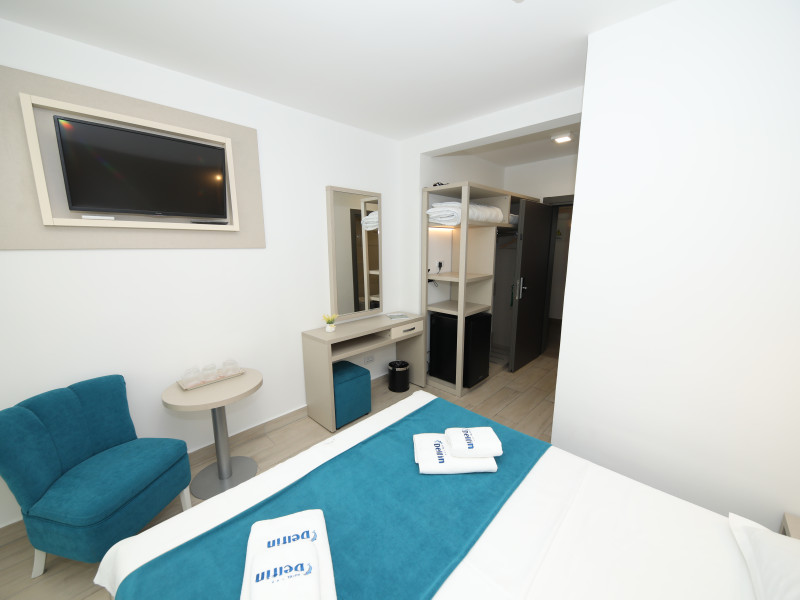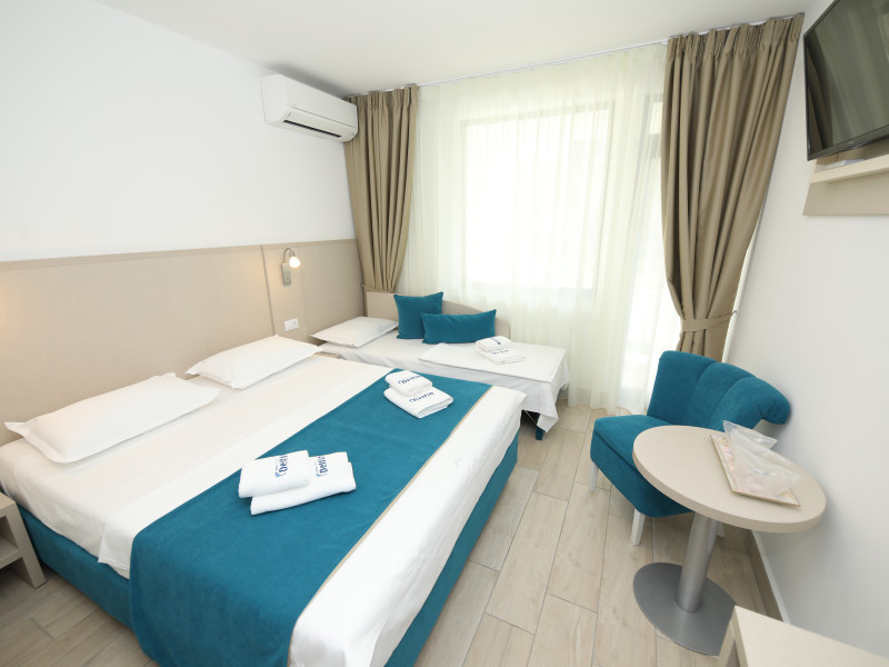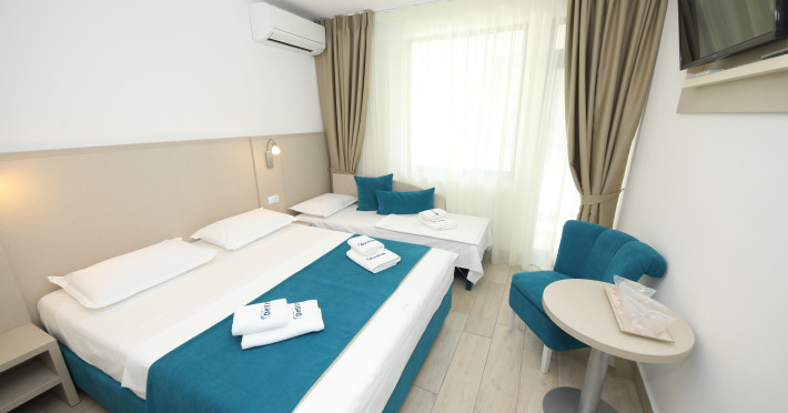 Hotelul Delfin se afla la intrarea in statiunea Mamaia, la aproximativ 100 de metri de Satul de Vacanta si la 50 de metri de plaja. Facilitati hotel: receptie non-stop, terasa, gradina, bar, seif, aer conditionat, automat (bauturi), camera de bagaje, fax/copiator, WI-FI, parcare. Facilitati camere: acces pe baza de cartela, izolare fonica, aer conditionat, TV LED, telefon, minibar, WI-FI gratuit, baie proprie cu dus, uscator de par, plasa de tantari, unele camere dispun de balcon.Datorita dinamicitatii domeniului disponibilitatea ofertelor se modifica de la un moment la altul. De aceea ofertele sunt valabile in limita locurilor disponibile. Agentia nu este responsabila pentru eventualele neconcordante care pot aparea intre informatiile privind tarifele si alte detalii din site si informatiile primite in agentie. In aceste cazuri vor avea prioritate, intotdeauna, informatiile primite in agentie.