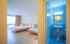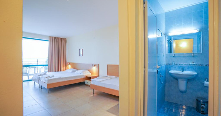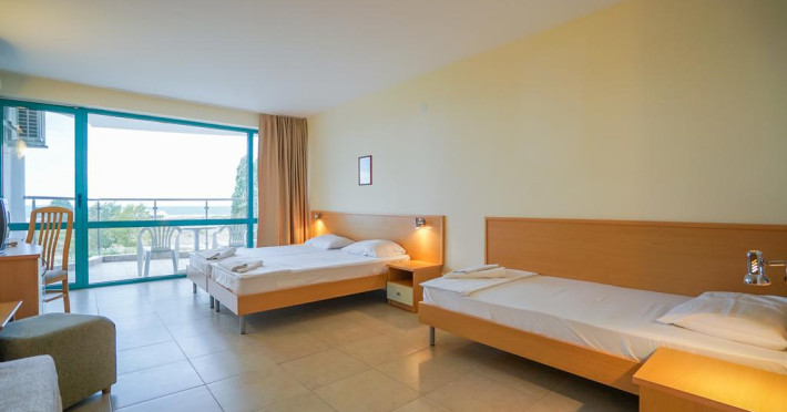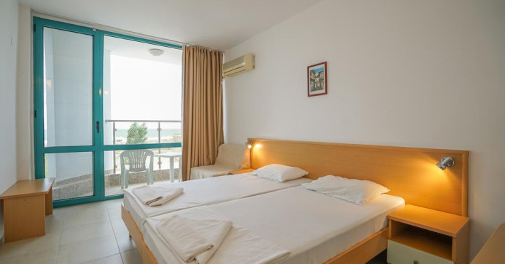 În camere există baie cu duș. Camerele luminoase de la Delfin Sunny Beach sunt dotate cu aer condiționat, Tv și seif. Oaspeții au acces la serviciul Wi-fi în camere contra cost. Curățenia in cameră se face zilnic. Proprietatea oferă camere pentru familie cu o suprafață mai mare și un număr mai mare de paturi față de cele standard. Se pot rezerva de asemenea camere pentru nefumători.