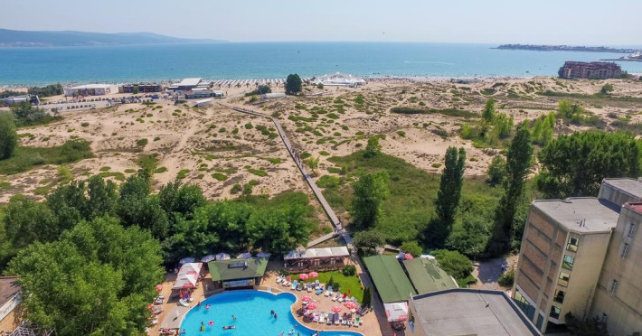 Amplasată în Sunny Beach, la 350 m de plaja Sunny, Delfin Sunny Beach este o proprietate de 3 stele care oferă o piscină în aer liber, terasă cu șezlonguri și umbrele de soare și unități de cazare cu aer condiționat. Facilitățile de la Delfin Sunny Beach includ și sală de fitness. Proprietatea are recepție cu program non - stop, unde clienții sunt întâmpinați cu ospitalitate în orice moment al zilei. Se oferă acces contra cost la internet Wi-fi în spațiile publice. Parcarea este posibilă pe stradă, în imediata apropiere a proprietății.
