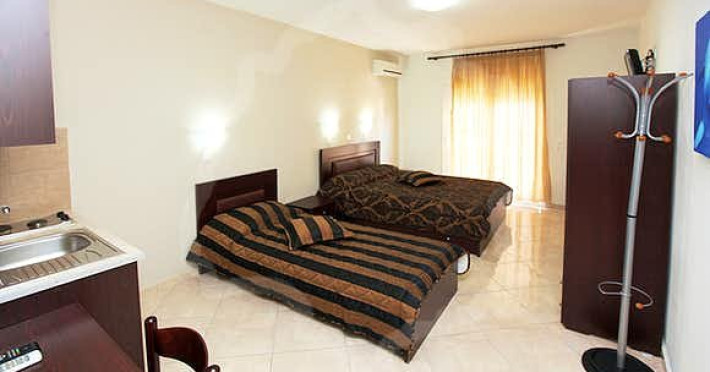 aer coditionat, tv, frigider, dus, uscator de par, internet si parcare. Camerele sunt curatate zilnic.
