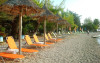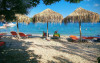 Delfini are în apropiere o plajă cu nisip. Pe plajă există șezlonguri și umbrele de plajă contra cost.