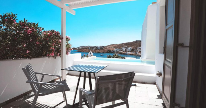 Deliades este o proprietate de 4 stele situată în Ornos (Mykonos) care oferă camere cu vedere la mare, un restaurant, o piscină în aer liber și o terasă cu șezlonguri și umbrele de soare. Facilitățile de la Deliades includ și sală de fitness. Proprietatea are, de asemenea, servicii de recepție cu program non - stop, concierge și închirieri auto. Se oferă acces gratuit la internet Wi-fi în spațiile publice. Parcarea este disponibilă la proprietate gratuit.