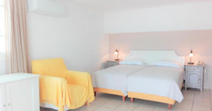 Sunt disponibile 30 camere. Unele camere au balcon cu vedere la mare, unde oaspeții pot admira apusul sau răsăritul soarelui. Fiecare cameră dispune de un aparat pentru preparare cafea sau ceai, cană-fierbător și minibar. Oaspeții pot solicita serviciul de room service pentru a servi masa sau diverse băuturi. Camerele confortabile de la Deliades au pardoseală de gresie/ marmură, aer condiționat, Tv cu canale prin satelit și seif. În camere există baie cu cadă sau duș ce are în dotare foehn și articole de toaletă gratuite. Oaspeții au acces gratuit la serviciul Wi-fi în camere. Curățenia in cameră se face zilnic. Anumite camere au cadă cu hidromasaj care asigură un plus de confort și răsfăț. Fiecare unitate de cazare are frigider. Proprietatea oferă camere pentru familie cu o suprafață mai mare și un număr mai mare de paturi față de cele standard. Se pot rezerva de asemenea camere pentru nefumători.