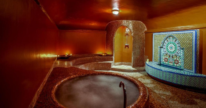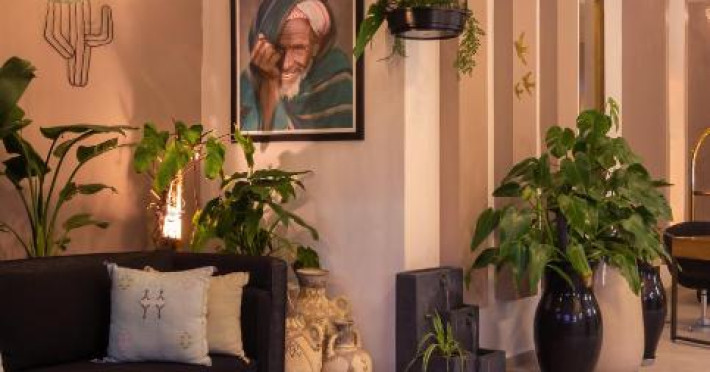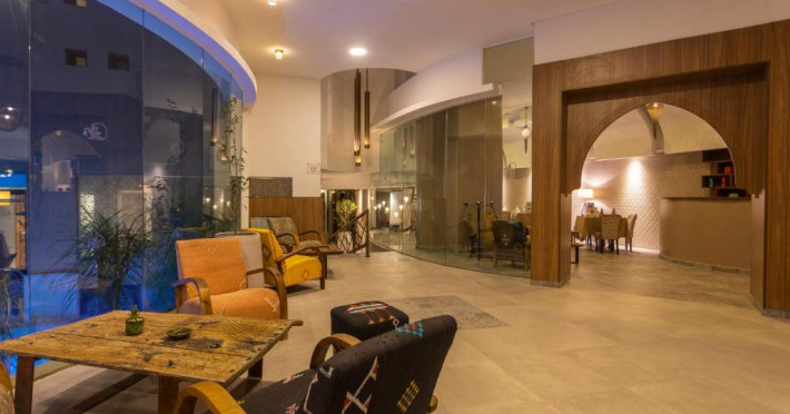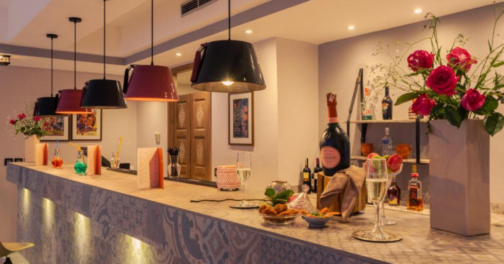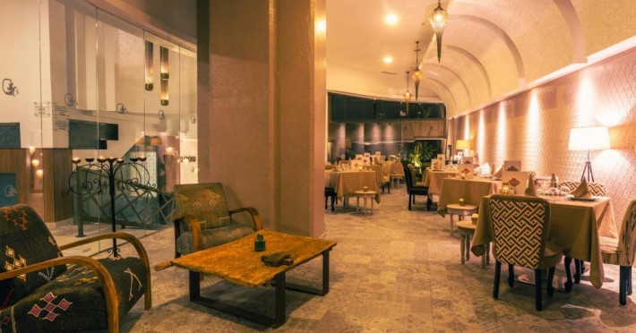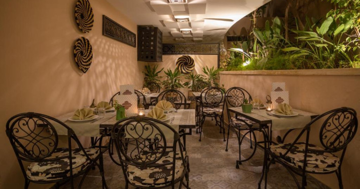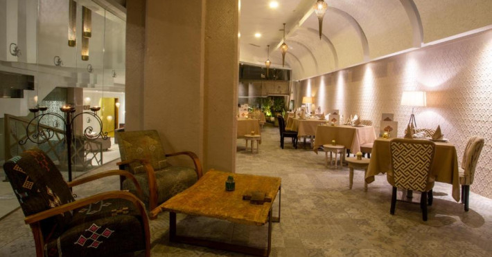 Barul-restaurant oferă băuturi si preparate excelente, imbinand aromele locale cu cele internationale. Oaspetii pot savura masa in timp ce admiră vederea panoramică la muntii Atlas.