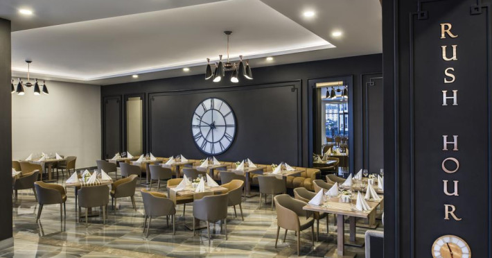 La Delphin Be Grand Resort oaspeții au la dispoziție 8 restaurante unde pot savura mâncăruri delicioase, în stil bufet sau à la carte. Preparate din bucătăria italiană, precum și preparate pescărești așteaptă să fie degustate zilnic. Masa poate fi servită atât în interior, cît si în aer liber, pe terasă, în funcție de vreme. 10 baruri, dintre care unul la piscină, sunt disponibile cu o ofertă variată de băuturi răcoritoare și alcoolice. În cadrul proprietății există și un snack bar care servește băuturi și gustări. Pentru cei cu anumite nevoi de nutriție, Delphin Be Grand Resort oferă meniuri pentru diete speciale.