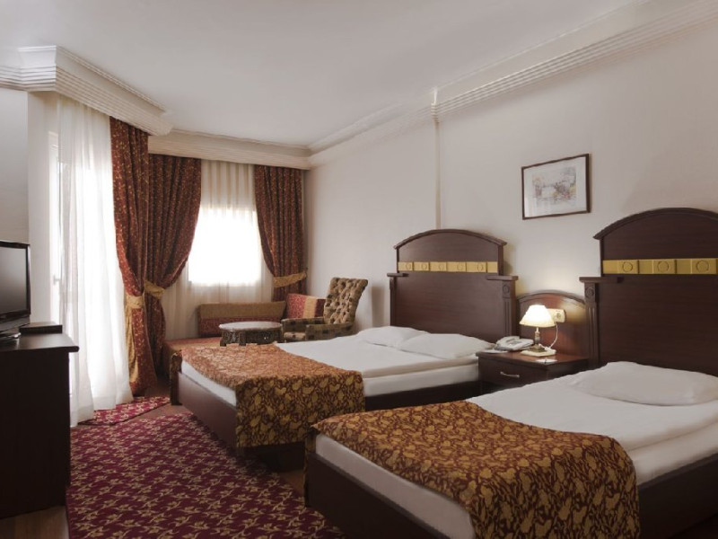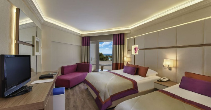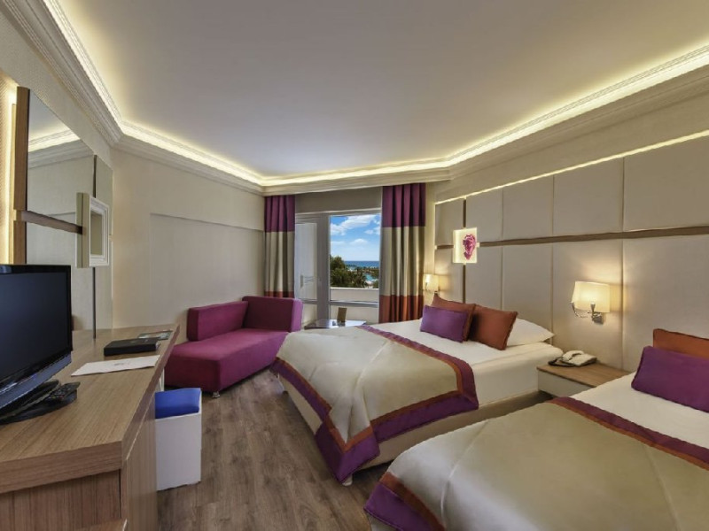 Descriere: Hotelul este construit pe un teritoriu cu o suprafata de 90.000 mp. Consta intr-o cladire principala cu 3 nivele si 3 corpuri anexe cu un numar total de 457 de camere. Ultima renovare a avut loc in 2014.Localizare: Hotelul este situat la 32 km de orasul Alanya, la 30 km de orasul Side si la 90 km de aeroportul Antalya.