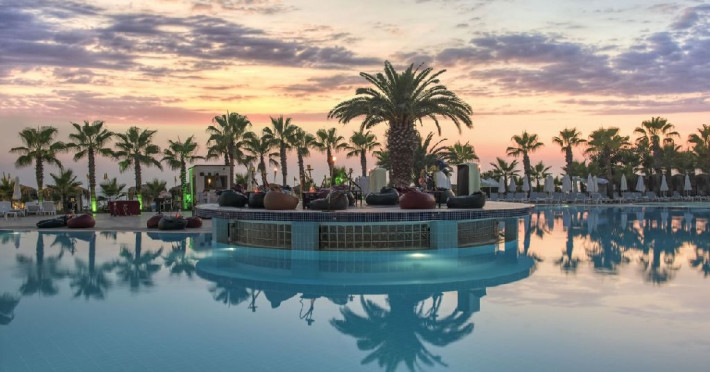 Facilitati hotel: Hotelul ofera oaspetilor sai urmatoarele facilitati: restaurant principal, 6 restaurante A la Carte (italian, chinezesc, japonez, turcesc, pescaresc si sushi), baruri, discoteca, 3 piscine exterioare pentru adulti, 3 piscine pentru copii, piscina cu 8 tobogane, Luna Park, sala fitness, centru SPA, baie turceasca, sauna, teren de tenis, volei pe plaja, tenis de masa, programe de animatie, muzica live, loc de joaca, animatie, miniclub (4-12 ani), cinema, Luna Park, minidisco.