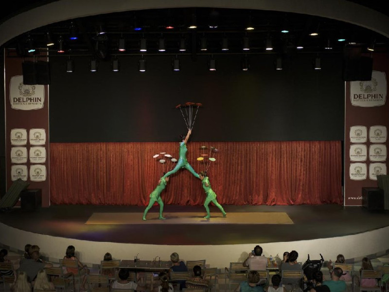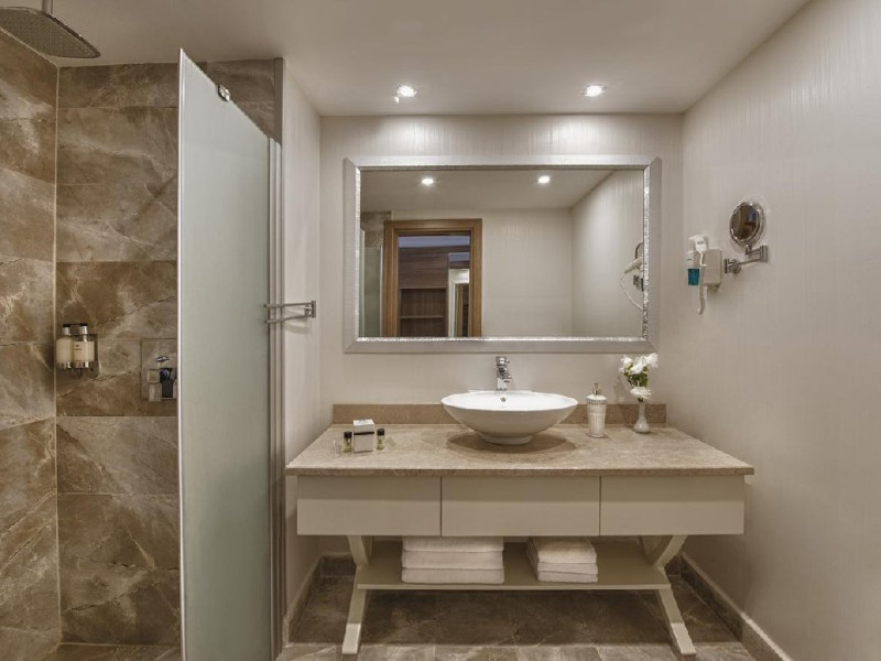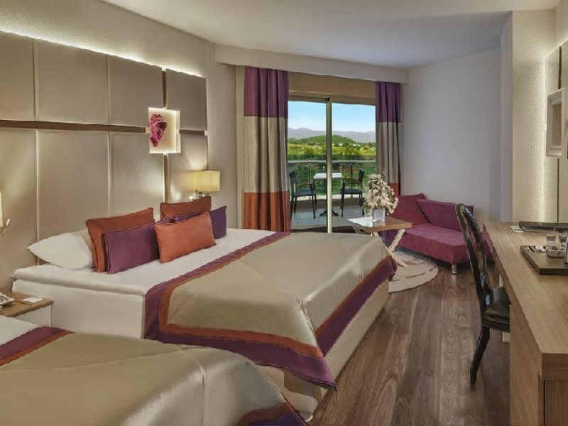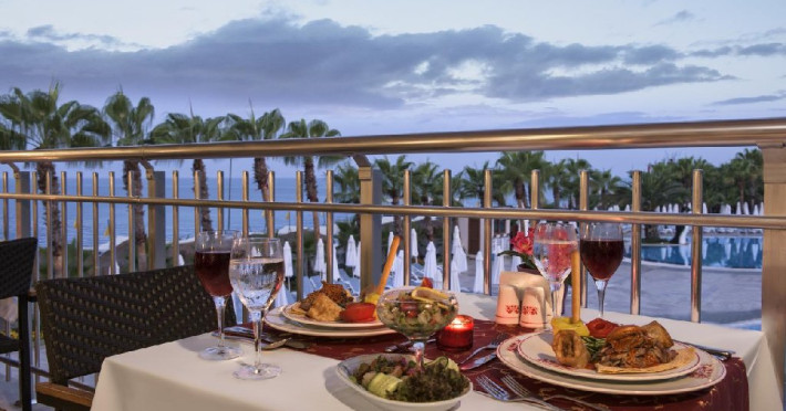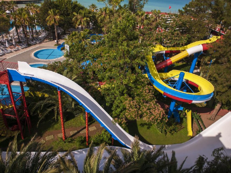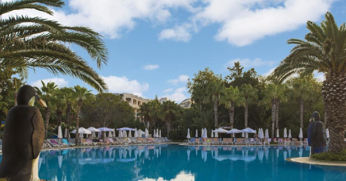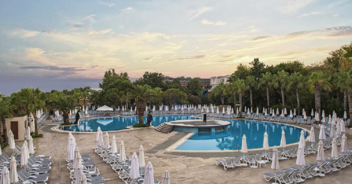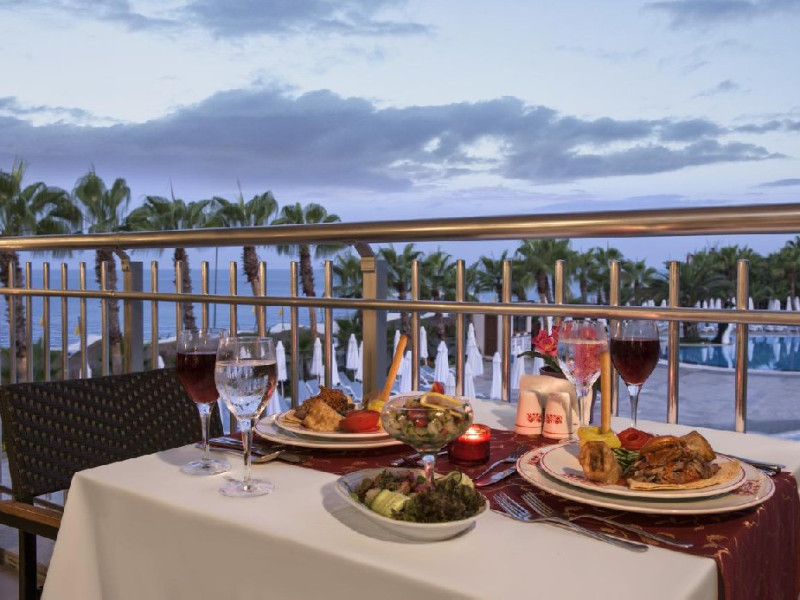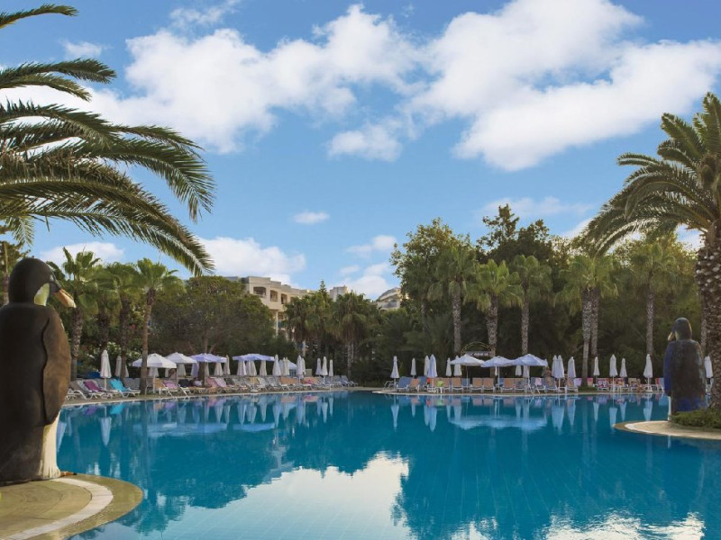 Facilitati hotel: Hotelul dispune de restaurant principal, sase restaurante A la Carte (italian, chinezesc, japonez, turcesc, pescaresc si sushi), baruri, discoteca, trei piscine exterioare pentru adulti, trei piscine pentru copii, piscina cu opt tobogane, Luna Park, sala fitness, centru SPA, baie turceasca, sauna, teren de tenis, volei pe plaja, tenis de masa, programe de animatie, muzica live.