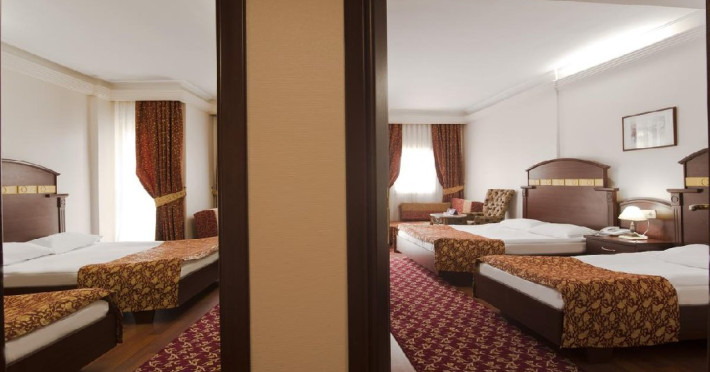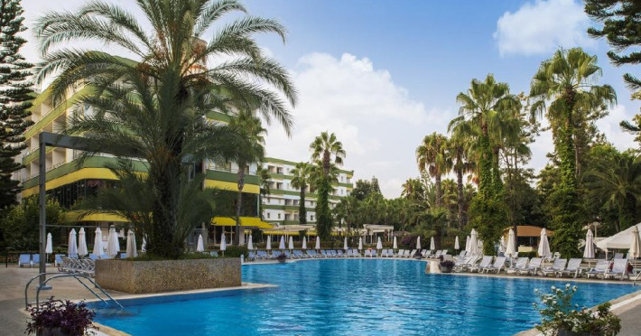 Facilitati camere: Hotelul are sase corpuri de cladiri cu cinci etaje, cu un total de 617 camere dintre care: 584 camere sunt standard, 30 camere tip family si 3 camere pentru persoane cu dizabilitati. Toate camerele sunt dotate cu balcon, baie, uscator de par, aer conditionat, telefon, minibar, seif si TV satelit.