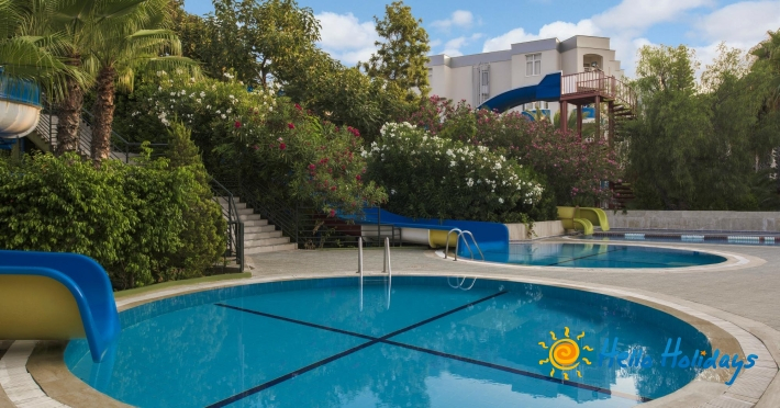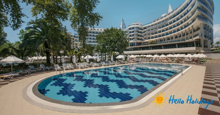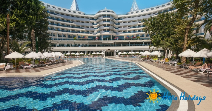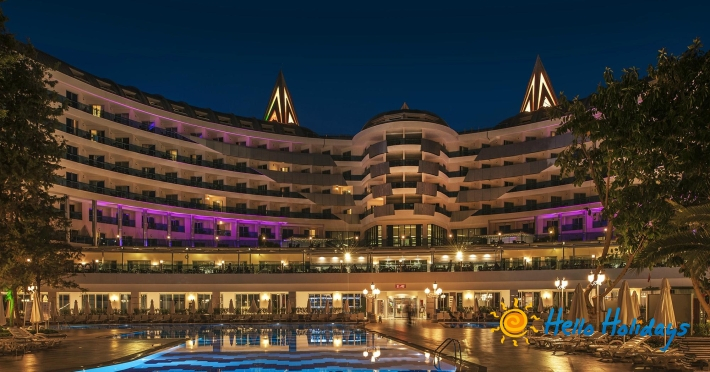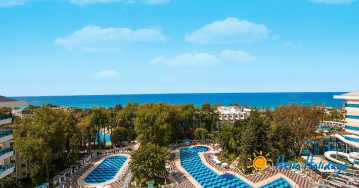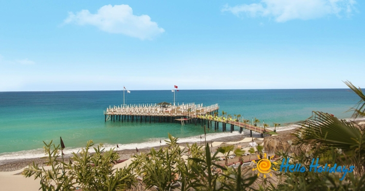 Hotelul este situat pe malul mării, la 90 km de aeroportul din Antalya.