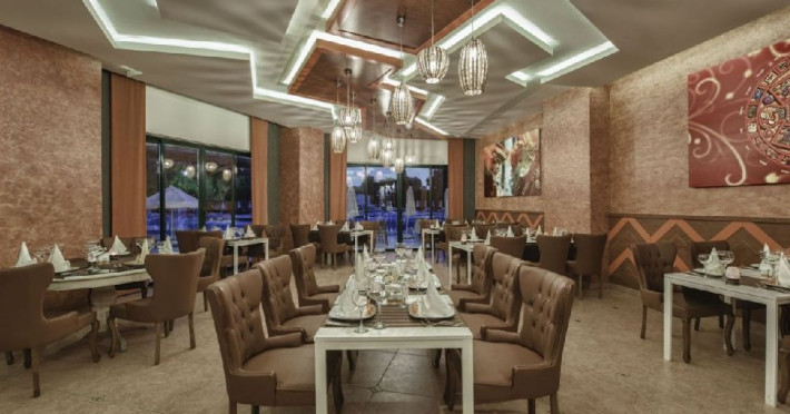 Sampanie de bun venit, bufet deschis pentru mic dejun, mic dejun tarziu, gustari, pranz, cina, cina tarzie, prajituri, cafea, ceai, inghetata, suc natural, toate bauturile locale si unele bauturi de import. Restaurantele ALa Carte (turcesc, pescaresc, italian, chinezesc, japonez, mexican) sunt gratuite, cu rezervare in prealabil.
