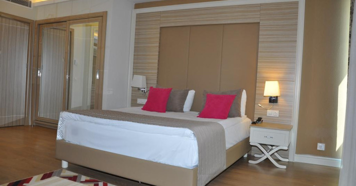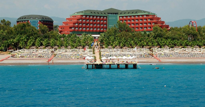 Este alcătuit dintr-o clădire cu 6 nivele (80% din camere sunt cu vedere directă sau parțială la mare). Hotelul dispune de: restaurantul principal (oferă meniu dietetic, meniu vegetarian), 6 restaurante a-la-carte (italian, chinezesc, mexican, turcesc, pescăresc, sushi - cu rezervare în prealabil – pe durata sejurului vizitarea unui singur restaurant - gratuit), 13 baruri, 2 piscine exterioare, piscină interioară, 4 tobogane, cabinet medical, centru SPA, frizerie, lanț de magazine, spălătorie, sală de conferințe (400 persoane). Activități (gratuit): baie turcească, saună, baie cu aburi, Jacuzzi, sală de fitness, aerobic, aqua-aerobic, volei pe plajă, 2 terenuri de tenis cu suprafață sintetică, închirierea echipamentului de tenis, nocturna terenului de tenis, tenis de masă, darts, billiard, sporturi nautice fără motor, program de animație, muzică live, discotecă, internet wireless (în lobby). Contra cost: masaj, bowling (2 piste), lecții de tenis, aparate de joc, internet café, sporturi nautice cu motor, lecții diving. Hotelul are plajă proprie cu nisip și pietriș. Chei. Bar pe plajă - gratuit. La piscină și pe plajă: umbrele, șezlonguri, saltele – gratuit. Prosoape de plajă – se cere garanție. Pentru copii: bufet, 3 piscine (una - interioară), loc de joacă, mini club (4–12 ani), luna-park (gratuit), cărucior (garanție).
