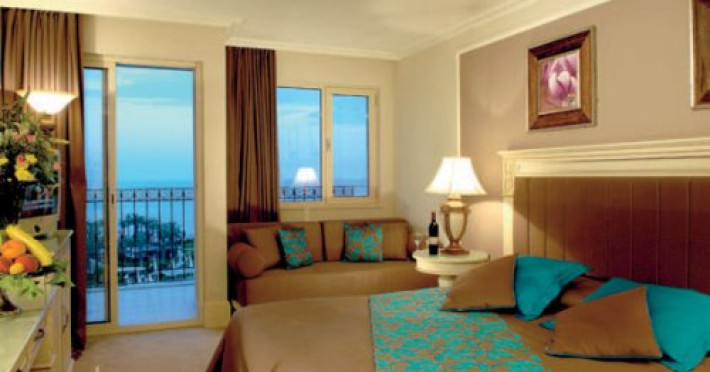 Hotelul dispune de un numar de 390 de camere in cladirea principala, cu vedere la mare sau la munte, dintre care 374 camere standard (26 - 30 mp), 2 camere pentru persoane cu dizabilitati (26 - 30 mp), 11 camere familiale (37 mp), 1 apartament Pink Moon Honeymoon Suite, pentru tineri casatoriti, 1 King Suite si 1 Presidential Suite. Toate camerele sunt dotate cu minibar reumplut zilnic (bauturi non alcoolice, bere, apa, alune si ciocolata), telefon direct, TV satelit, A/C centralizat, baie, uscator de par, seif, balcon si mocheta. Room service gratis intre orele 02:00-07.00.
