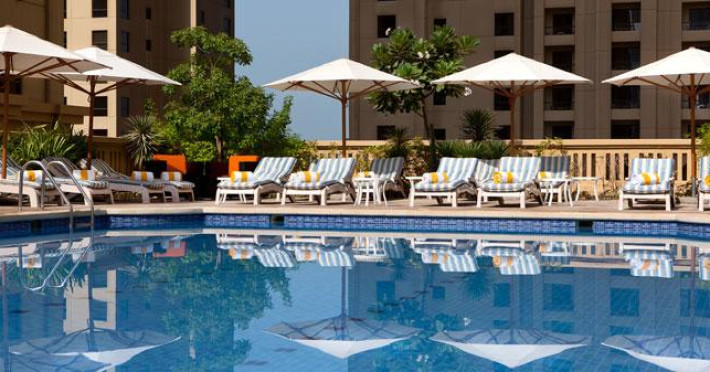 Relax in the heart of Dubai’s new business and leisure hub at the Ramada Plaza Jumeirah Beach. Located beachside on the famous Jumeirah Beach Residence (JBR), our Dubai hotel is the perfect escape whether you are traveling for business or pleasure. Our outdoor heated pool and fitness center make it easy to unwind during your stay. Relax on Jumeirah Beach or catch up on email using our Wi-Fi Internet access. Our on-site buffet restaurant, Shores, is open daily for breakfast, lunch and dinner or you can order room service 24 hours a day. For business travelers, our Jumeirah Beach hotel features conference space as well as a business center.Relax in the heart of Dubai’s new business and leisure hub at the Ramada Plaza Jumeirah Beach. Located beachside on the famous Jumeirah Beach Residence (JBR), our Dubai hotel is the perfect escape whether you are traveling for business or pleasure. Our outdoor heated pool and fitness center make it easy to unwind during your stay. Relax on Jumeirah Beach or catch up on email using our Wi-Fi Internet access. Our on-site buffet restaurant, Shores, is open daily for breakfast, lunch and dinner or you can order room service 24 hours a day. For business travelers, our Jumeirah Beach hotel features conference space as well as a business center.
