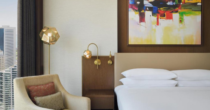 Acest hotel pune la dispoziția oaspeților camere cu aerul, birou, cafetieră, un frigider, cutie de valori, televizor cu ecran plat și baie proprie cu bideu. Camerele includ o ibric electric, iar unele camere au o bucătărie cu o mașină de spălat vase, un cuptor și un cuptor cu microunde. La Delta Hotels by Marriott City Center Doha, fiecare cameră este echipată cu lenjerie de pat și prosoape.
