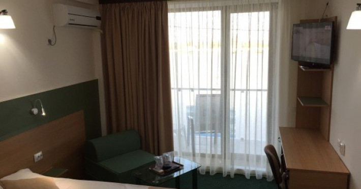 Camere: Camerele duble dispun de mobilier modern, grup sanitar propriu cu uscator de par, aer conditionat/incalzire centrala, TV, cablu TV, acces internet LAN si wireless, telefon, minibar, balcon. Apartamentele sunt formate din doua dormitoare, doua bai, living si balcon; au o capacitate de cazare de 4 sau 5 locuri. Unitatea de cazare ofera conditii bune de cazare persoanelor care doresc sa descopere frumusetile Deltei, dar care doresc sa se bucure si de o baie in Marea Neagra.