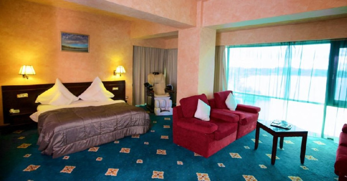 Camera deluxe 4* - Suprafata 45 mp, pat matrimonial, zona de relaxare pe canapea neextensibila, fotolii si baie proprie cu cada, si o priveliste impresionanta catre Dunare, prin peretele de sticla.Junior Suite 4* - suprafata 80 mp, format dintr-un living cu canapea extensibila, scaun de masaj si baie de serviciu, un dormitor cu pat matrimonial si baie proprie cu jacuzzi, apartamentele Junior Suite ofera maximul de confort pentru una, doua sau trei persoane. Livingul si dormitorul comunica intre ele printr-un culoar, fara usa despartitoare. Situate la etajele 5 si 6, apartamentele Junior Suite ofera o priveliste panoramica spre portul turistic si spre Dunare.