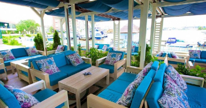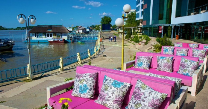 Terasa restaurantului propune racoare pe malul Dunarii, pe parcursul zilelor toride de vara, si privelisti spectaculoase cu apusurile de soare oglindite in apa fluviului.