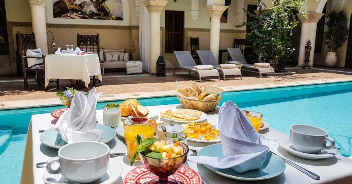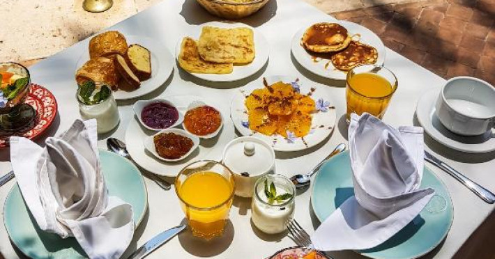 The Riad serves refined local specialities for breakfast and dinner. Have breakfast in the comfort of your room, and dinner in the intimate atmosphere of the restaurant or by candlelight in the patio.