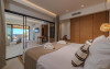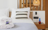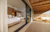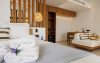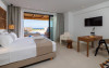 Camerele și suitele spațioase sunt decorate in tonuri neutre și dispun de balcoane private cu vedere spre Marea Egee sau grădinile hotelului. Fiecare unitate de cazare este dotată cu aer condiționat, TV cu ecran plat, minibar și facilități pentru prepararea ceaiului și cafelei.