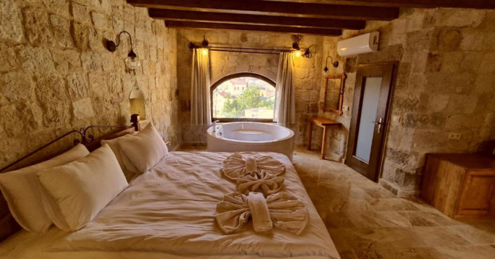 Acest hotel original, sculptat in stancă, oferă camere decorate individual, cu acces gratuit la Wi-Fi si o cadă spa mare. Hotelul are o curte intimă din care se pot admira coloanele de stancă din Cappadocia.