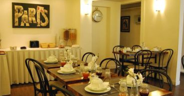 Property LocationA stay at Hotel des Batignolles places you in the heart of Paris, a 7-minute drive from La Machine du Moulin Rouge and 11 minutes from Palais Garnier. This hotel is 1.8 mi (2.9 km) from Place de la Concorde and 1.8 mi (2.9 km) from Arc de Triomphe.RoomsStay in one of 46 guestrooms featuring flat-screen televisions. Complimentary wireless Internet access keeps you connected, and satellite programming is available for your entertainment. Bathrooms have bathtubs or showers and hair dryers. Conveniences include phones, as well as safes and desks.DiningBuffet breakfasts are available daily from 7 AM to 10:30 AM for a fee.Rec, Spa, Premium AmenitiesTake in the views from a terrace and a garden and make use of amenities such as complimentary wireless Internet access.Business, Other AmenitiesFeatured amenities include complimentary newspapers in the lobby, dry cleaning/laundry services, and a 24-hour front desk.Datorita dinamicitatii domeniului disponibilitatea ofertelor se modifica de la un moment la altul. De aceea ofertele sunt valabile in limita locurilor disponibile. Agentia nu este responsabila pentru eventualele neconcordante care pot aparea intre informatiile privind tarifele si alte detalii din site si informatiile primite in agentie. In aceste cazuri vor avea prioritate, intotdeauna, informatiile primite in agentie.