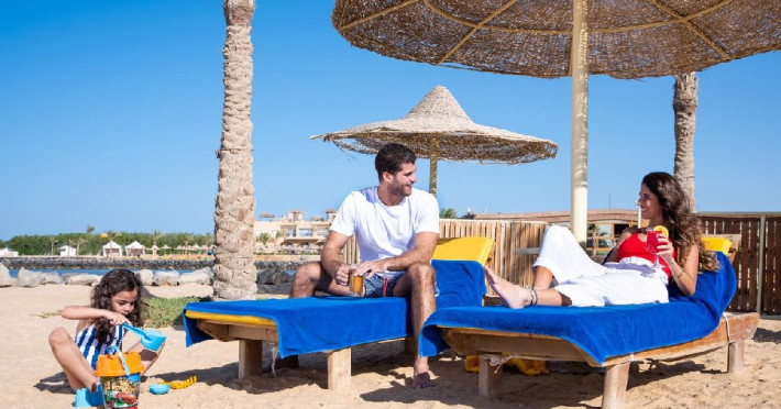 Activitati: Exista o selectie de activitati oferite pe tot parcursul zilei in sala de gimnastica interioara sau zona de antrenament in aer liber, pe puntea yoga cu vedere la Marea Rosie sau cu un antrenor personal. Sporturi nautice, jocuri pe plaja, windsurf, scufundari si vanatoare la apus de soare, sunt cateva dintre distractiile in apa. Distractie in familie, la parcul acvatic cu piscina incalzita, la cinema pentru copii sau mini disco. Babysitters disponibile la cost splimentar. Poti afla despre cultura si istoria Egiptului printr-o serie de activitati locale. Poti invata argoul egiptean, dansul din buric sau vizita situl arheologic din apropiere. Muzica live, spectacole de dans si petreceri tematice, pentru nopti de distractie si divertisment sub cerul instelat al Marii Rosii.