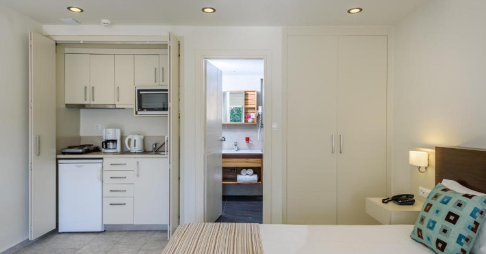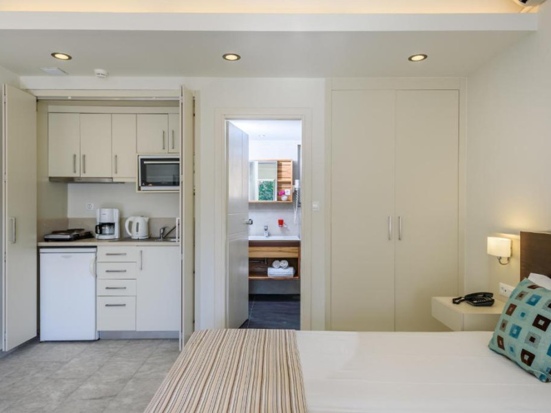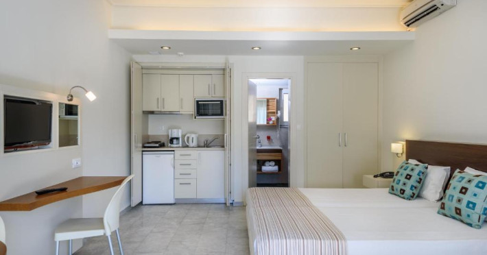 Cazare confortabilă: Fiecare apartament are aer condiționat, chicinetă, balcon și baie privată. Facilitățile suplimentare includ o zonă de luat masa, o canapea extensibilă și un birou, asigurand un sejur confortabil.