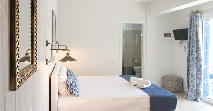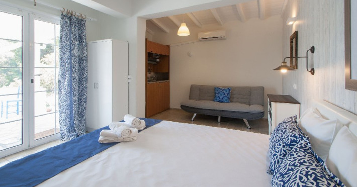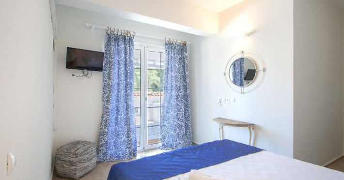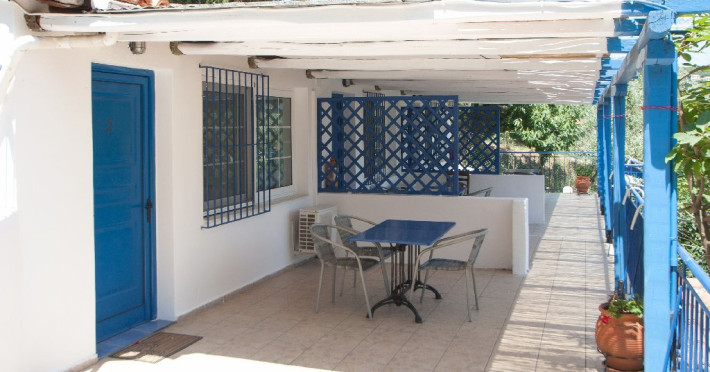Facilitati vila: Vila Despo are 6 studiouri dispuse terasat in forma de amfiteatru, intr-o gradina plina cu flori si copaci. O piscina cu bar se afla la doar 50 de metri distanta (vis a vis) si este dotata cu umbrele si sezlonguri, accesul fiind gratuit ca in cazul tuturor picinelor din insula. Singura obligatie din partea turistilor este ca acestia sa comande bauturi de la barul piscinei.