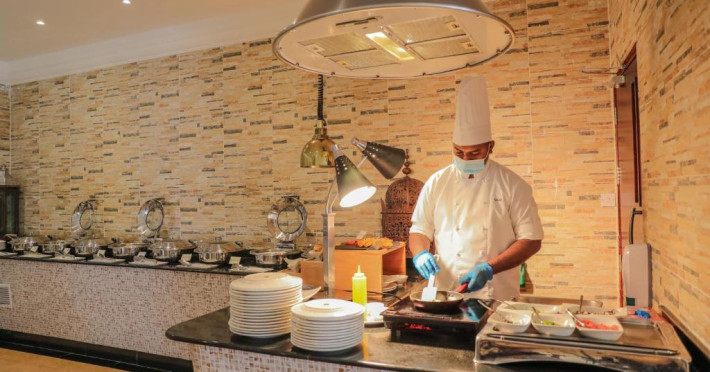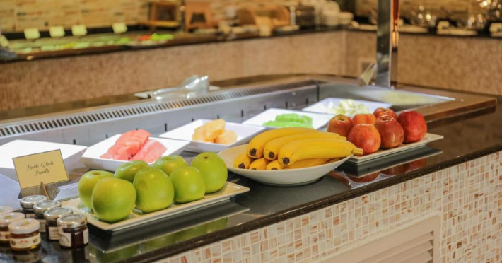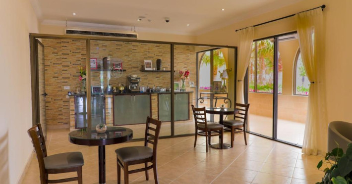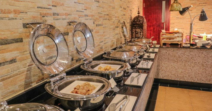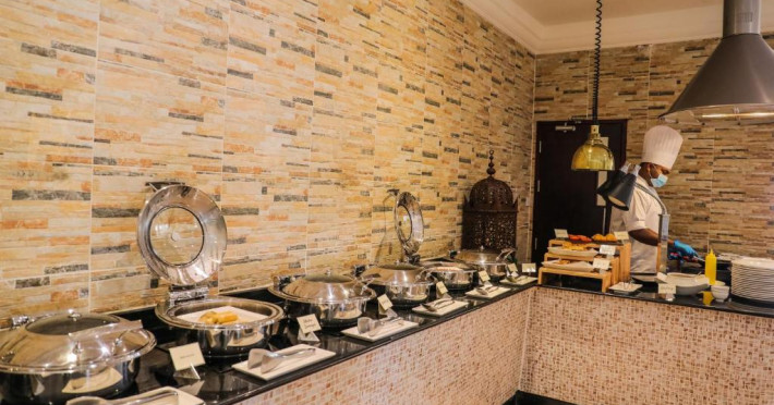 Hotelul Dhafra Beach are 2 restaurante si baruri, printre care un restaurant deschis pe tot parcursul zilei, o cafenea, un bar informal si un club de noapte.