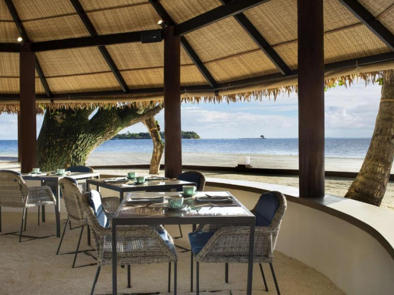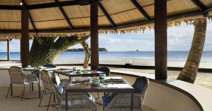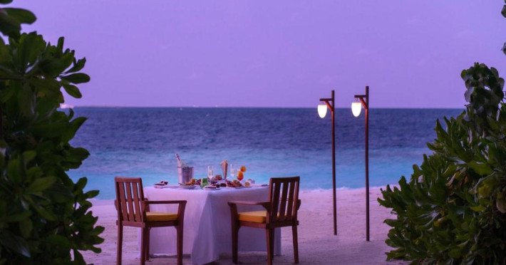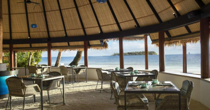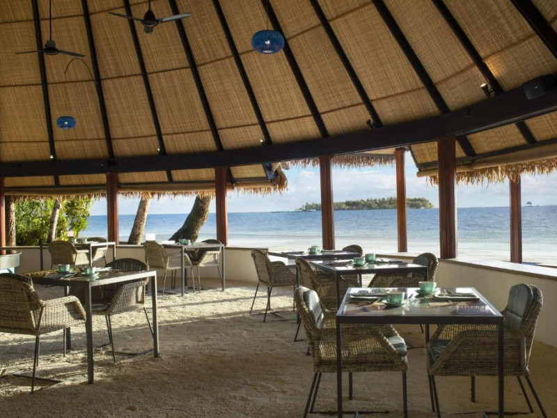 Proprietatea oferă specialități din Maldive preparate de bucătarii stațiunii pe un banc de nisip privat sau o petrecere la grătar in vila dumneavoastră. Restaurantul are vedere la Oceanul Indian și oferă mancăruri asiatice, mediteraneene și locale, in timp ce Velaavani de pe malul apei servește cocktailuri. Pentru o varietate suplimentară de mese/activitate, oaspeții pot călători la Banyan Tree Vabbinfaru, la 5 minute cu barca cu motor, unde pot lua masa la restaurante și pot face snorkeling in reciful.