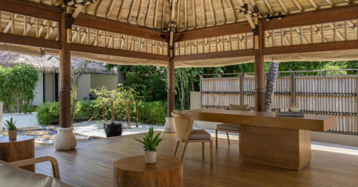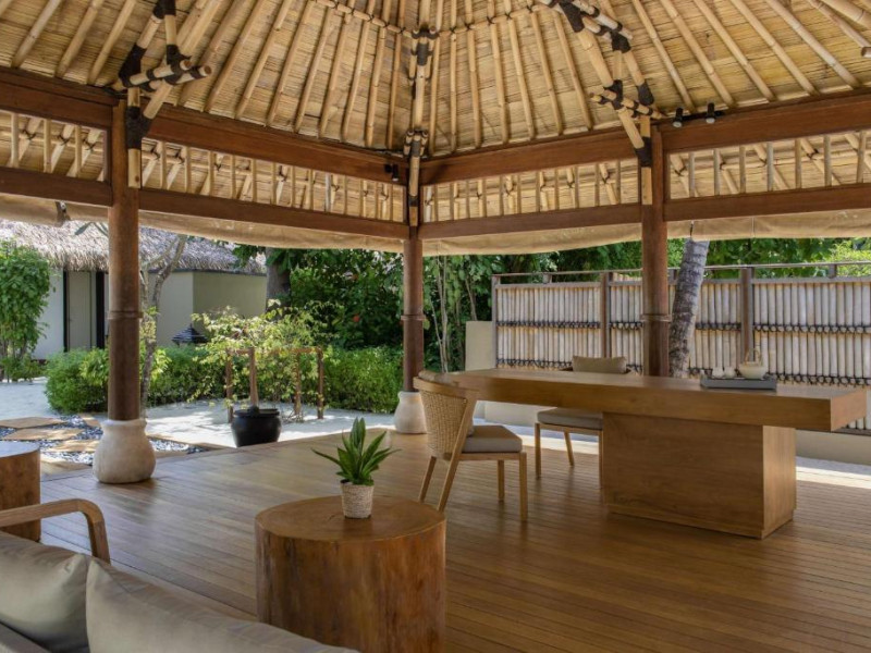 Vilele cu acoperiș de paie de la complexul ecologic oferă WiFi in cameră și au zone de luat masa și de relaxare in grădinile lor private. Are vedere la ocean și oferă articole de toaletă ecologice. Unele vile au o piscină cu jet in aer liber. Fiecare vilă are leagăne din Maldive.