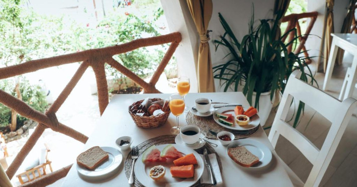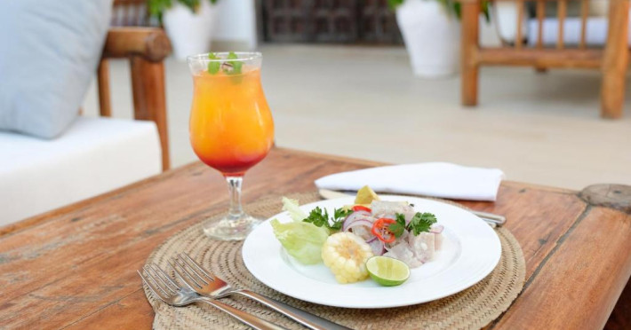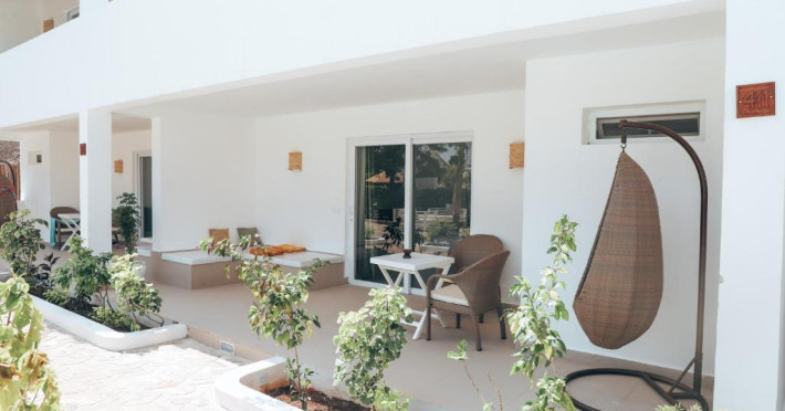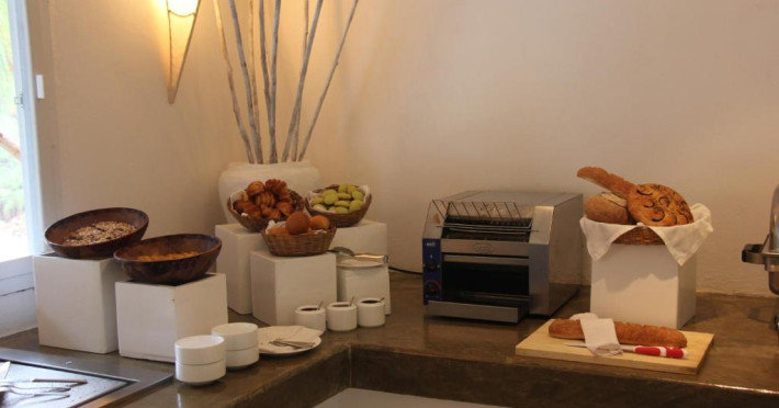 Restaurantul hotelului servește preparate proaspete cu specific mediteranean și local, cu accent pe fructe de mare. Facilitățile includ centru de kite-surfing, masaj, inchirieri biciclete și organizare de excursii in imprejurimi. Plaja privată cu palmieri oferă cadrul perfect pentru relaxare, iar reciful de corali din apropiere este ideal pentru snorkeling.