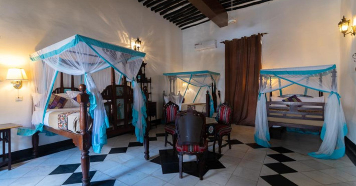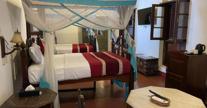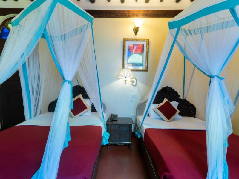 Fiecare cameră spațioasă are aer condiționat și mobilier si decor in stil Zanzibari. De asemenea, camerele sunt dotate cu TV prin satelit și fierbător electric. Băile private au uscător de păr.