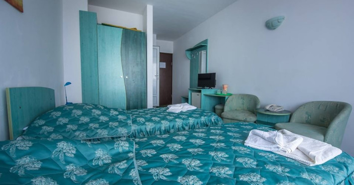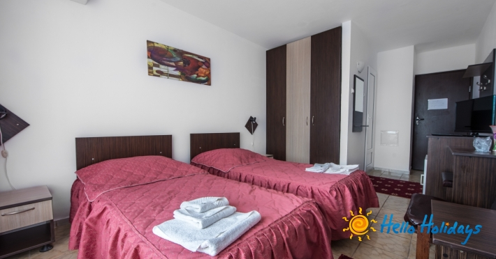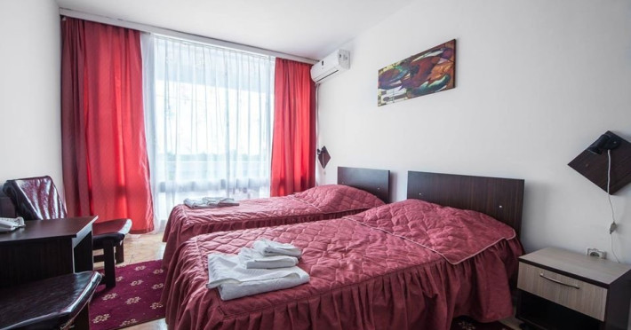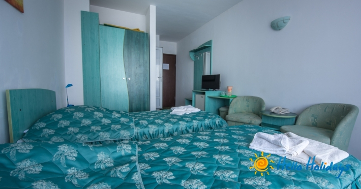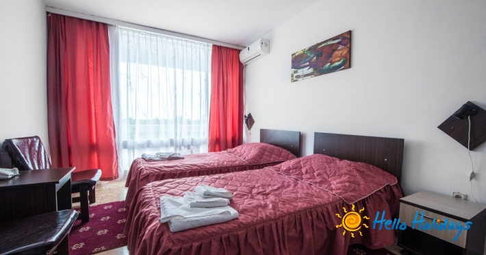Toate camerele au o suprafata de 20 mp, detin frigider, 2 paturi twin, TV, baie proprie cu dus, seif, AC, balcon cu mobilier, uscator de par. Suprafata camera 20 mp.